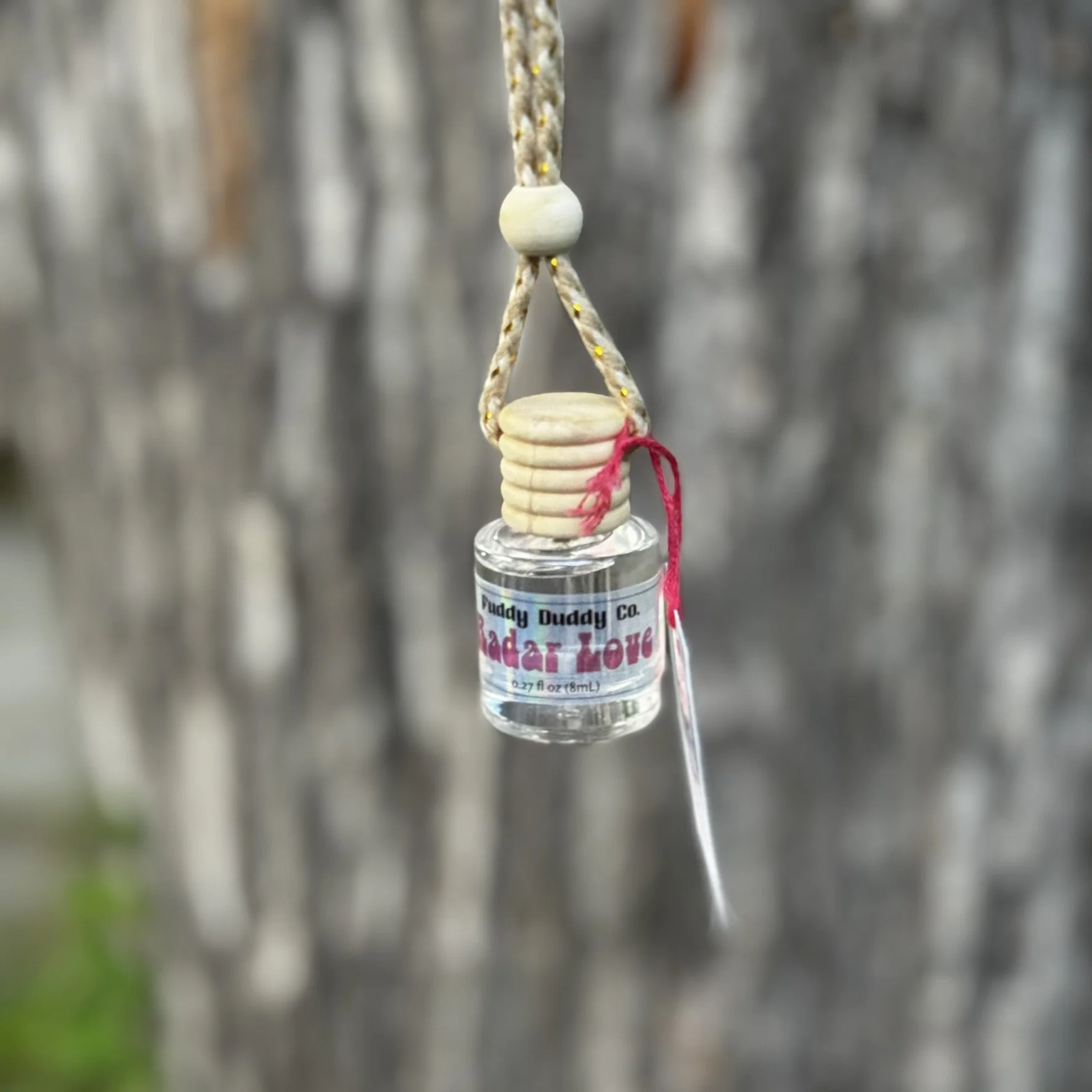 Car air fresheners are made to be hung from your rearview mirror. Every few days, tip the air freshener over for 1-2 seconds to refresh the scent. The wooden lid absorbs the oils from tipping, perfuming the air. Due to the alcohol-based formulation, it is not recommended to have other items touch the air freshener lid. If the liquid spills, immediately wipe up to avoid damage to surfaces. If the temperatures outside reach over 95°, remove air freshener from car to prevent evaporation due to extreme heat. This will extend the life of your air freshener. Typically lasts around 6-8 weeks, depending on how often you refresh the scent.